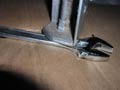 The leg bolts and/or plate is striped on the rear right.