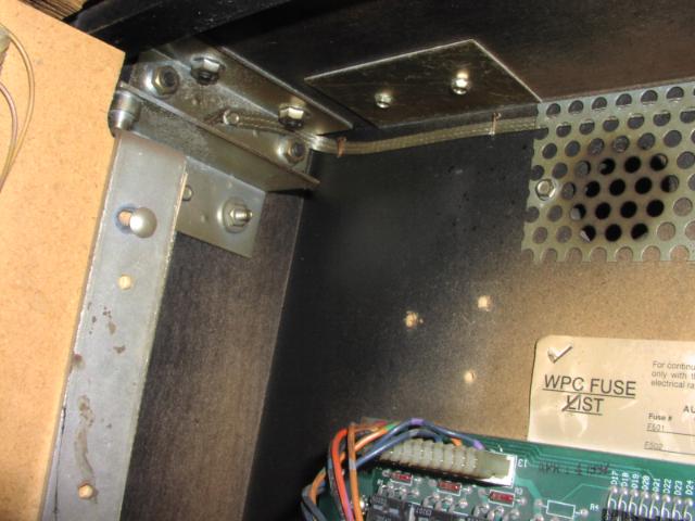 Click on small photo for larger view of wire hacks on the coin door >>